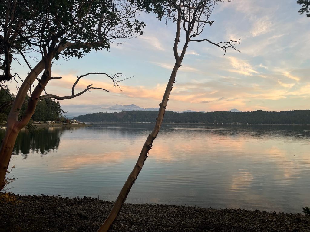 This month I’m pondering the lessons of fog, how fog keeps light from traveling as far, reflects light back, makes it hard to see the road ahead, and also makes it hard for one to be seen. I recently went to Hood Canal with a dear friend from Los Angeles. Of course, I run wherever I go, and I was looking forward to running new roads and trails in nature, especially this time of year with all the beautiful fall foliage. While I had packed my headlamp, I decided I’d be indulgent since I was away and in a new place, and I made the decision not to run in the dark. I let myself “sleep in” and didn’t go out to run until the sun was up, leaving my headlamp behind and heading out in the early morning dawn.