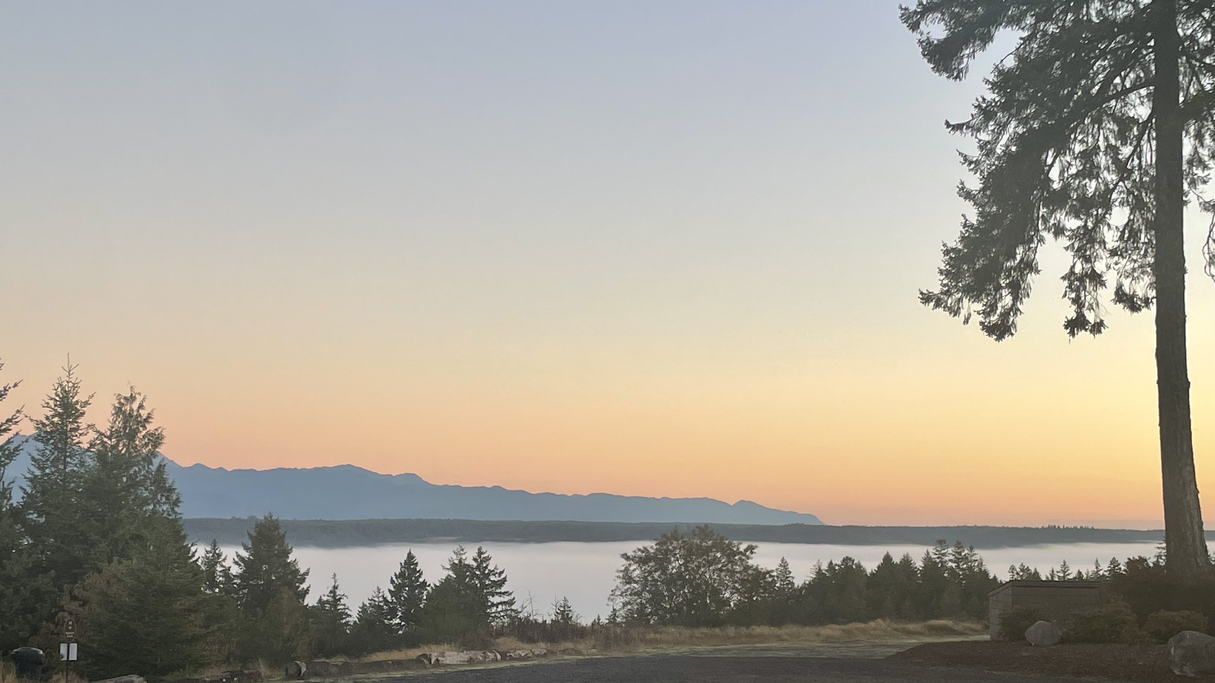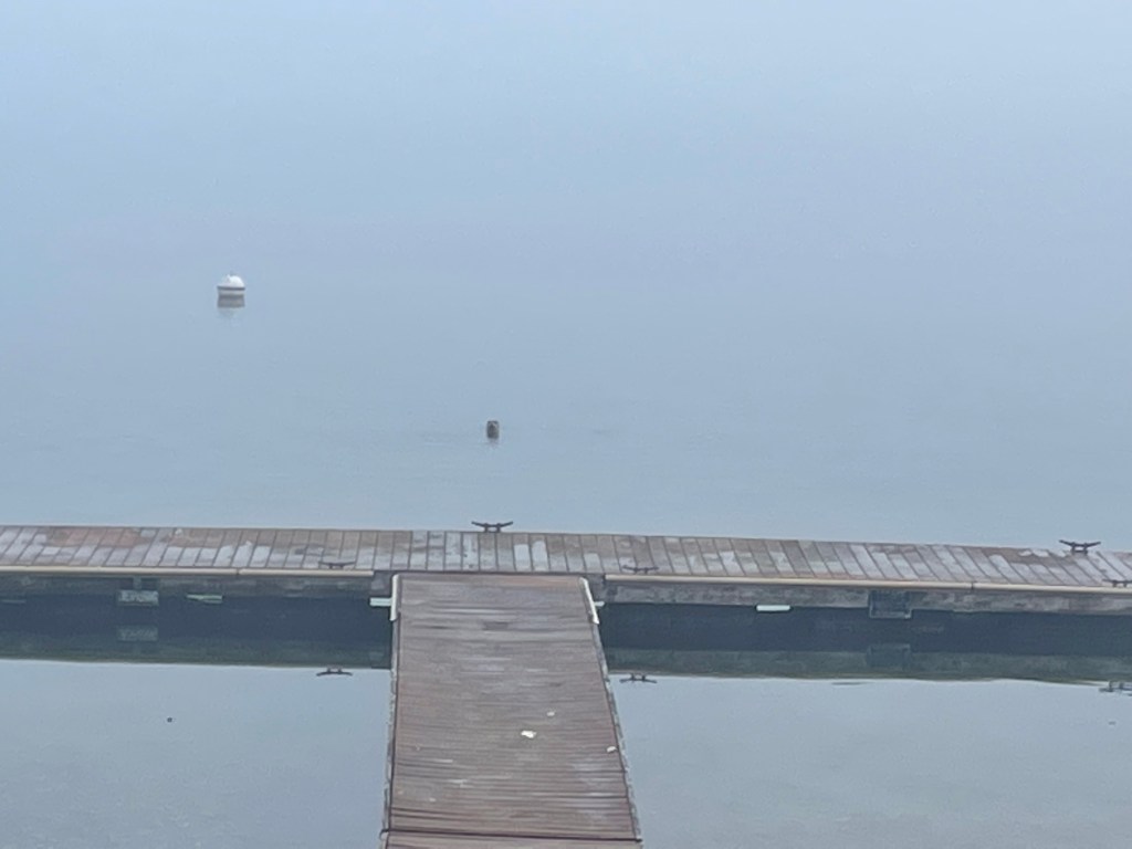 I had mapped my route the night before after getting lost several times in our explorations post-arrival, both in the car and as we explored on foot. The moment I left our Airbnb, I decided to make a change and to run the route backward. I headed down the hill towards the water first rather than saving what I knew would be a very challenging uphill at the end of my run. I would still have an uphill climb, but I told myself it was stretched out over a greater distance, so it wouldn’t be as steep. I’m not sure what meaning I might make that I chose the quick descent and the longer slog back up; I’ll save that for another day of pondering. Down the hill, I went, and as I descended, I found myself encapsulated in fog. It was early, and the road was thankfully quiet as I wound down the hill, turn after turn, without much shoulder or visibility. I had planned to run along the water in one direction before looping back and heading in the other direction towards a tiny town called Union.