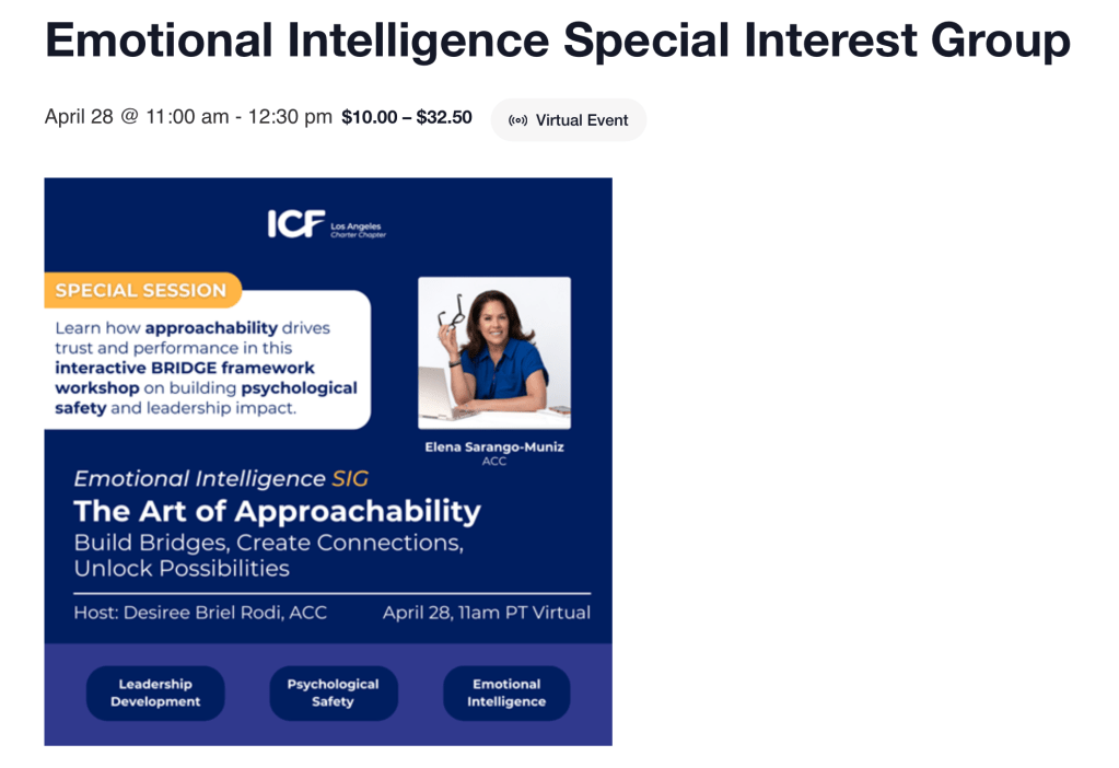 - Practice tools and techniques we can apply personally and with our clients, to develop approachability in the workplace, creating spaces where people want to belong to.